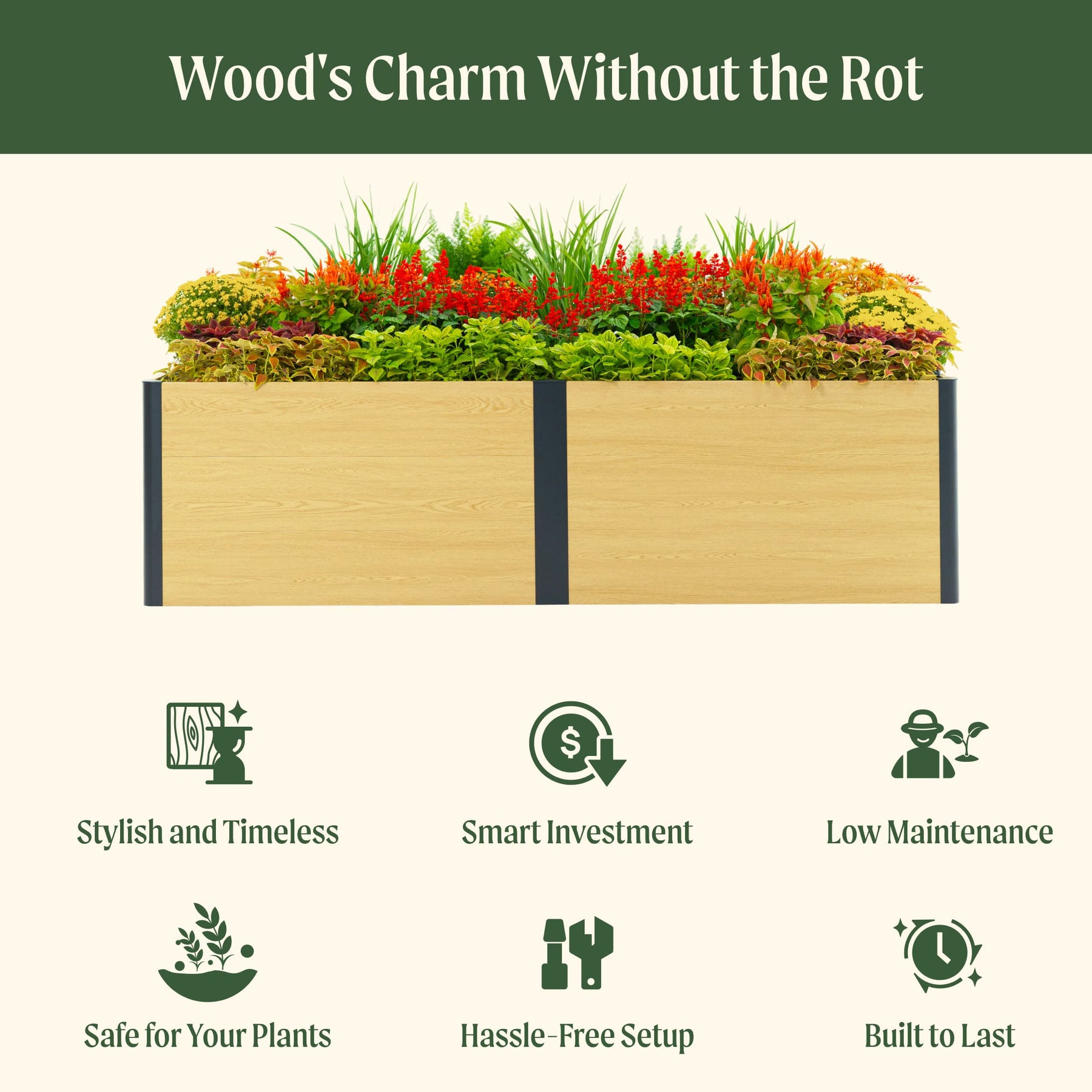 26" Tall Woodgrain 4' x 8' Metal Raised Garden Bed