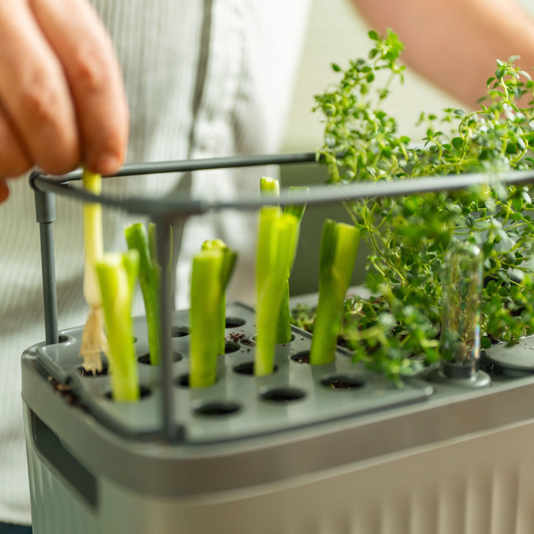 • Green Onion Grow Guides support even spacing and healthy regrowth