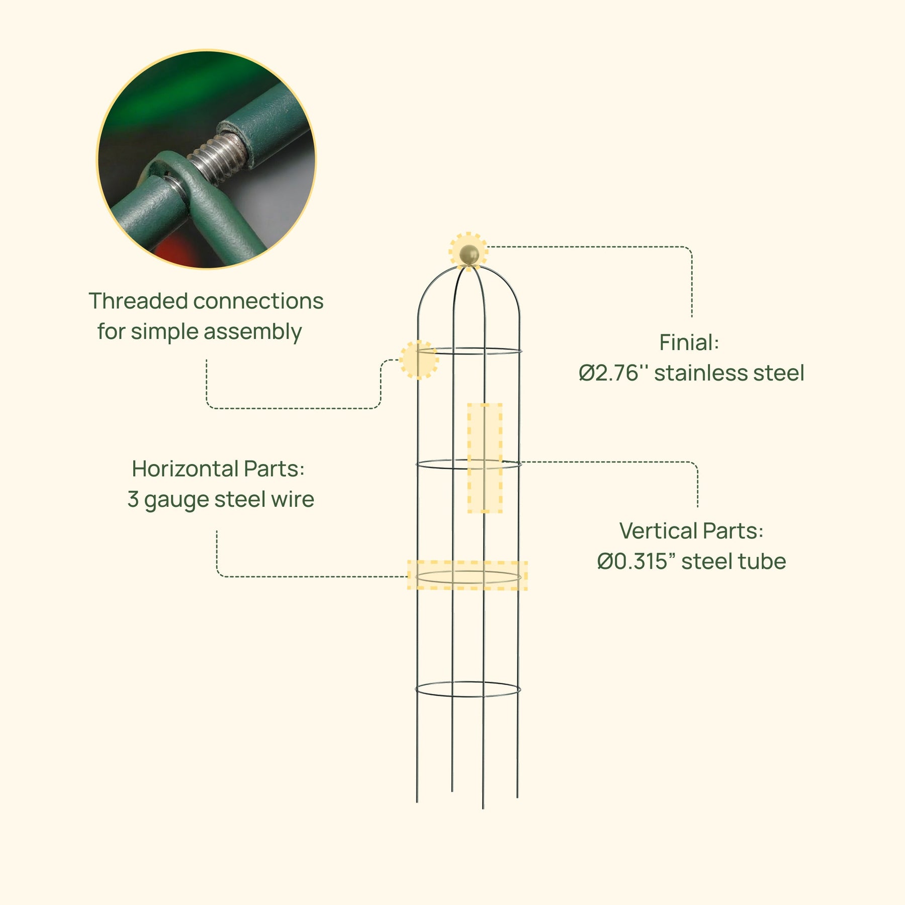 With a smooth, circular silhouette and modular height, the Round Obelisk helps climbing plants grow up beautifully in your garden.