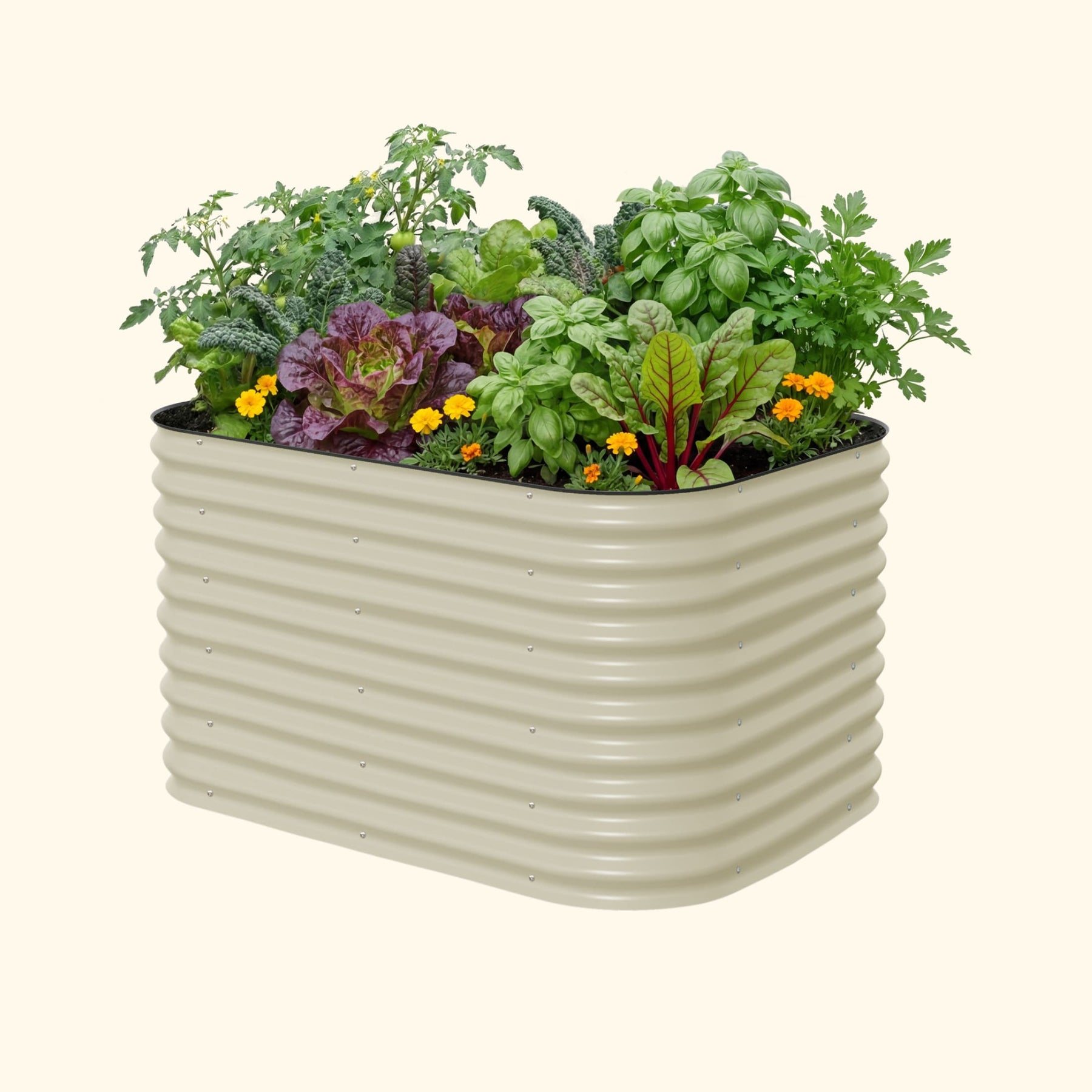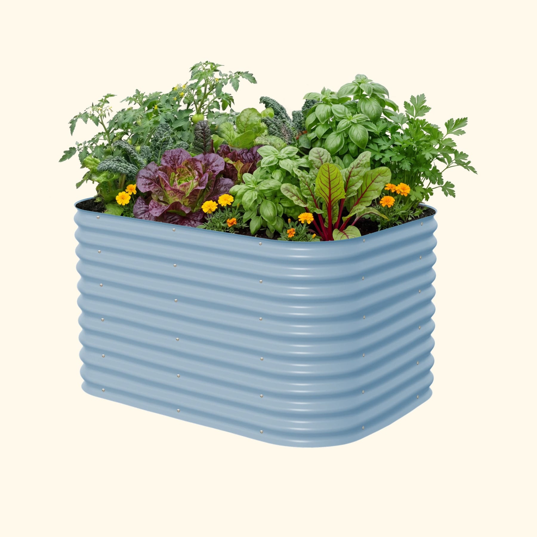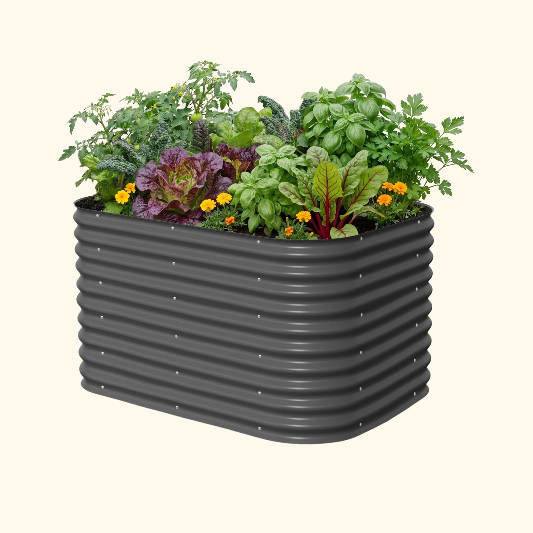 Our raised beds are safe to grow vegetables, fruits and other edible plants in. While treated wood and plastic degrade under extreme temperatures, Aluzinc steel will not leach chemicals into plants or soil. This helps maintain the highest quality soil for organic gardening. Aluzinc steel provides superior performance and corrosion resistance under numerous environmental conditions. The metal and paint used to construct our beds will not leach any harmful contaminants into the soil.