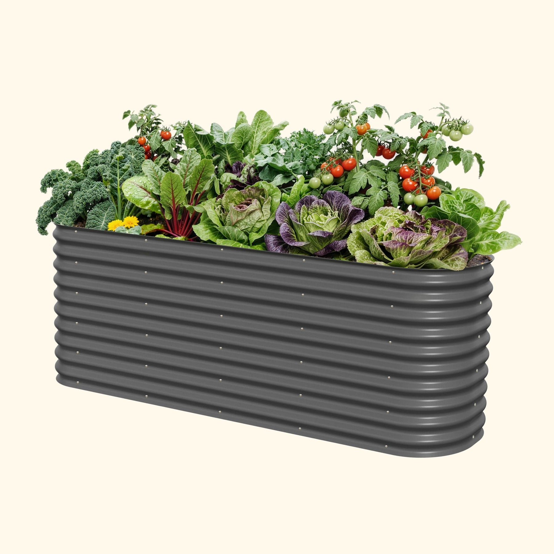 Our raised beds are safe to grow vegetables, fruits and other edible plants in. While treated wood and plastic degrade under extreme temperatures, Aluzinc steel will not leach chemicals into plants or soil. This helps maintain the highest quality soil for organic gardening. Aluzinc steel provides superior performance and corrosion resistance under numerous environmental conditions. The metal and paint used to construct our beds will not leach any harmful contaminants into the soil.